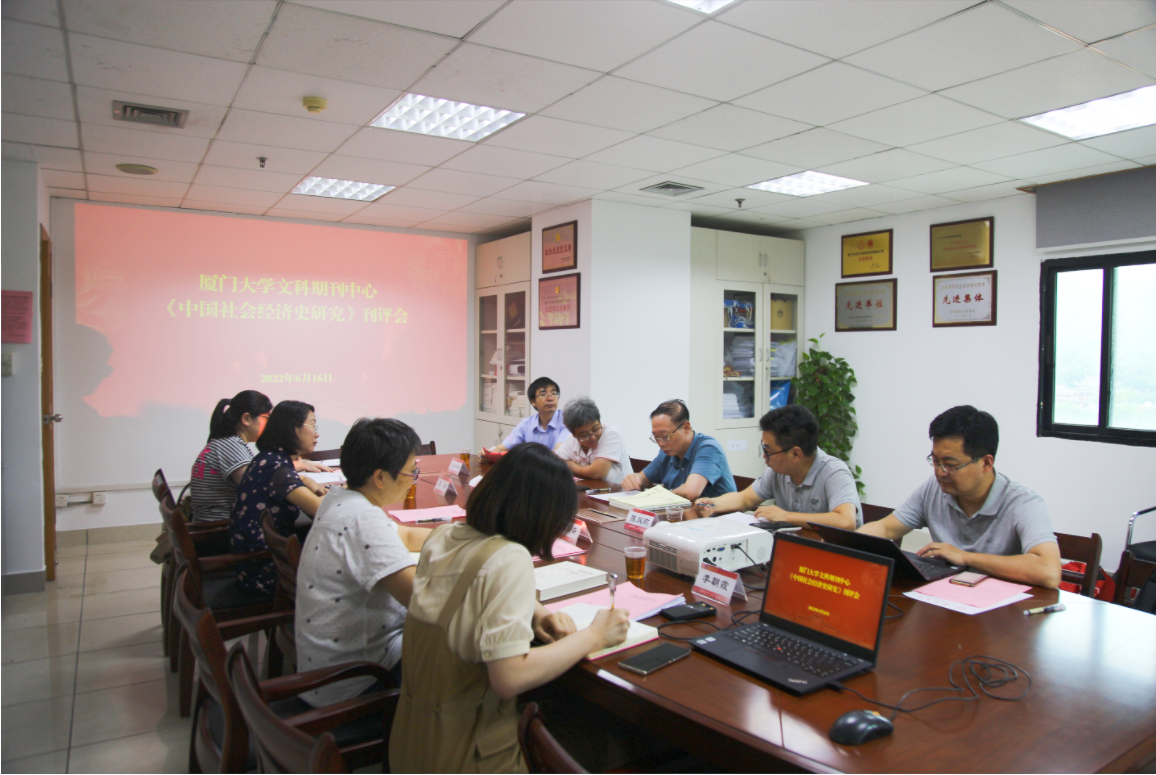 2022年6月16日,厦门大学文科期刊中心召开《中国社会经济史研究》刊评会,特邀东南学术杂志社原社长、总编辑杨健民研究员对文科期刊中心刊物进行指导。会议由社科处副处长夏路主持。厦门大学学报(哲学社科版)编辑部副主任陈双燕、《台湾研究集刊》主编王华、《中国社会经济史研究》副主编林枫、《中国经济问题》常务副主编张兴祥、《台湾研究集刊》编辑部主任陈勤奋、《南洋问题研究》助理编辑许丽丽等参加了刊评会。