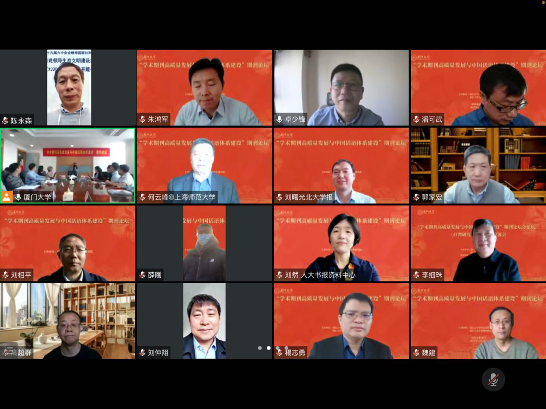 2022年11月26日,由厦门大学中国式现代化研究院与厦门大学文科期刊中心联合主办的“学术期刊高质量发展与中国话语体系建设”期刊论坛在厦门大学顺利举行。