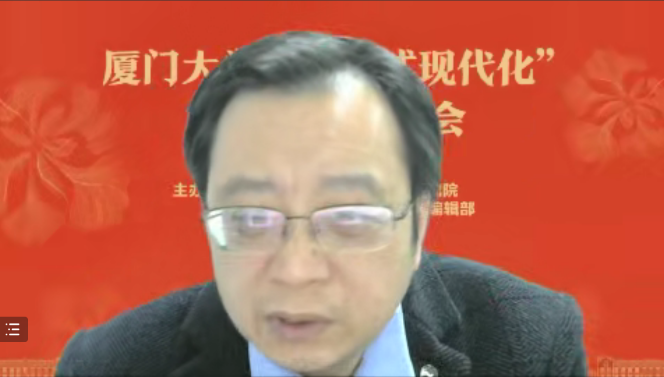 为深刻领会党的二十大精神,自觉践行学术期刊的历史使命,2022年12月22日,厦门大学举办“中国式现代化”期刊专题研讨会,深入解读中国式现代化,为中国式现代化的研究阐释贡献厦大智慧和厦大方案。本次专题研讨会由厦门大学中国式现代化研究院、厦门大学学报(哲社版)编辑部和厦门大学文科期刊中心联合主办。来自全国高校的百余名师生通过腾讯会议平台线上参加了此次研讨会。